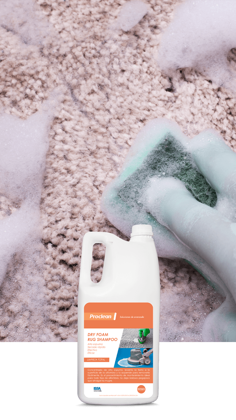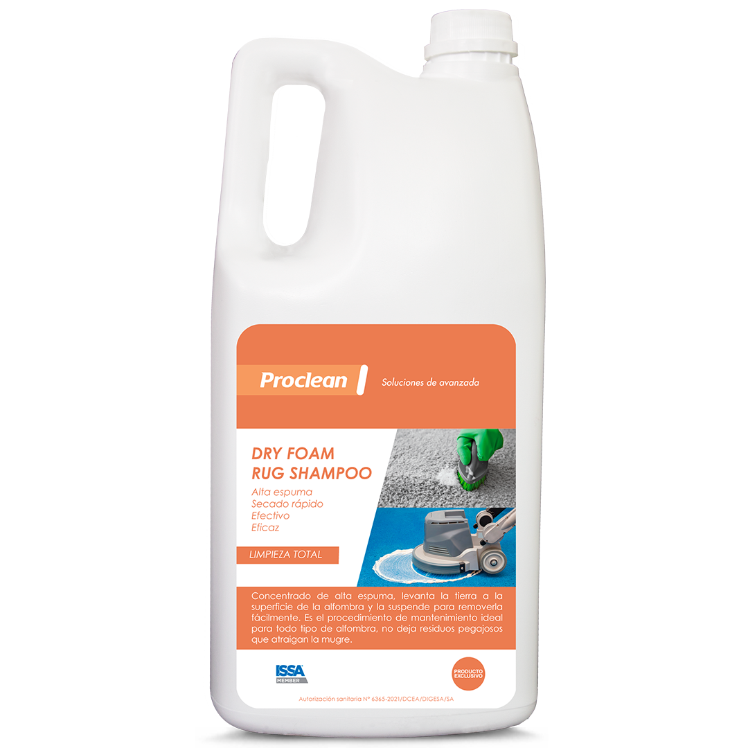 Shampoo para alfombras de rápido secado, especial para limpieza de tapicería y alfombras. Concentrado de alta espuma que levanta la tierra a la superficie de la alfombra y la suspende para removerla con facilidad – solo es necesario pasar la aspiradora cuando se seque. Los detergentes, edificadores y solventes especiales a base de agua dejan las alfombras como nuevas sin dejar residuos pegajosos que atraigan la mugre.