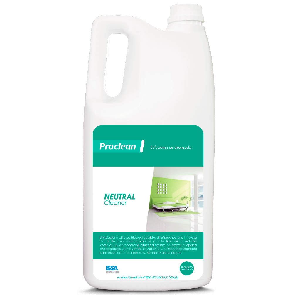 Limpiador multiusos biodegradable concentrado, diseñado para la limpieza diaria de pisos con acabados y todo tipo de superficies lavables. Su composición química neutra no daña, ni opaca los acabados, aun cuando se usa sin diluir. No necesita enjuague y es de alta dilución.