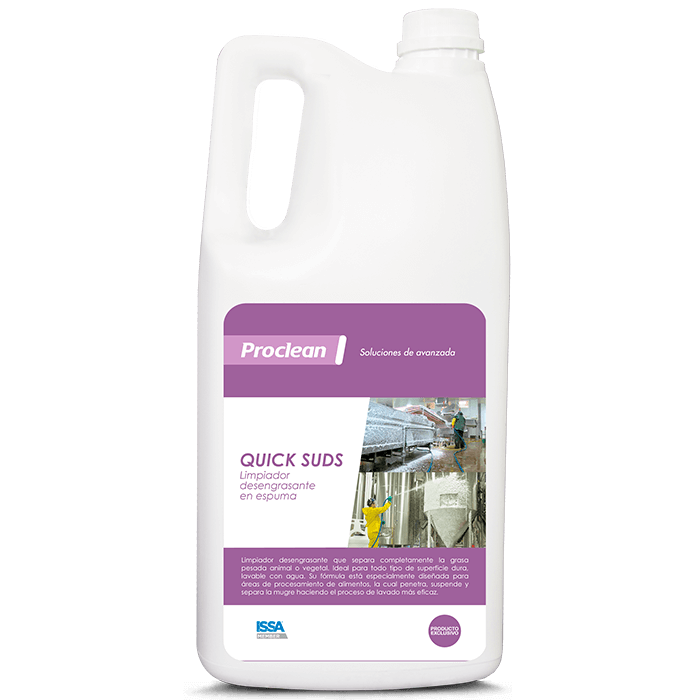 Limpiador desengrasante de cocina en espuma que elimina las capas aceitosas, grasosas, la mugre aceitosa y jabonosa, grasa animal o vegetal pesada y aceite de cualquier superficie lavable con agua. Diseñado específicamente para mugre difícil que se encuentra en establecimientos que manejan comida. Penetra, suspende y enjuaga la mugre en campanas de extracción, cubiertos, equipos para cortar, estufas, mostradores, mesas, parrillas, cocinas, descuartizadores, áreas de comercio de alimentos, restaurantes, supermercados, piscinas y otros. Su fórmula espesa y adherente se fija en las superficies verticales, haciéndolas fáciles de limpiar. Se utiliza con pistola espumadora o máquinas espumadoras. Espuma desengrasante.