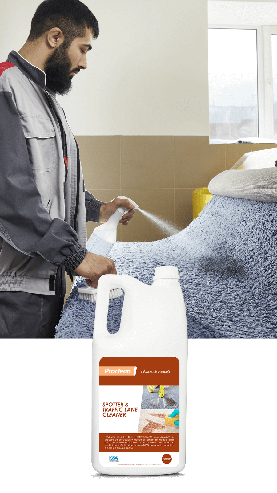Aplicar con un rociador y dejar actuar sobre la alfombra por 15 min antes de comenzar la limpieza.