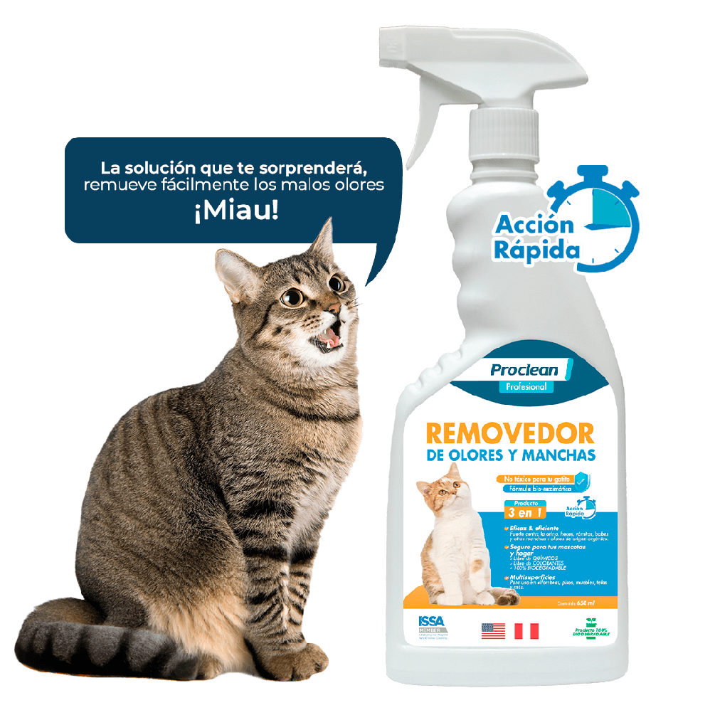 Ideal para remover los malos olores y manchas causados por la orina, heces y vómitos de tu mascotita.